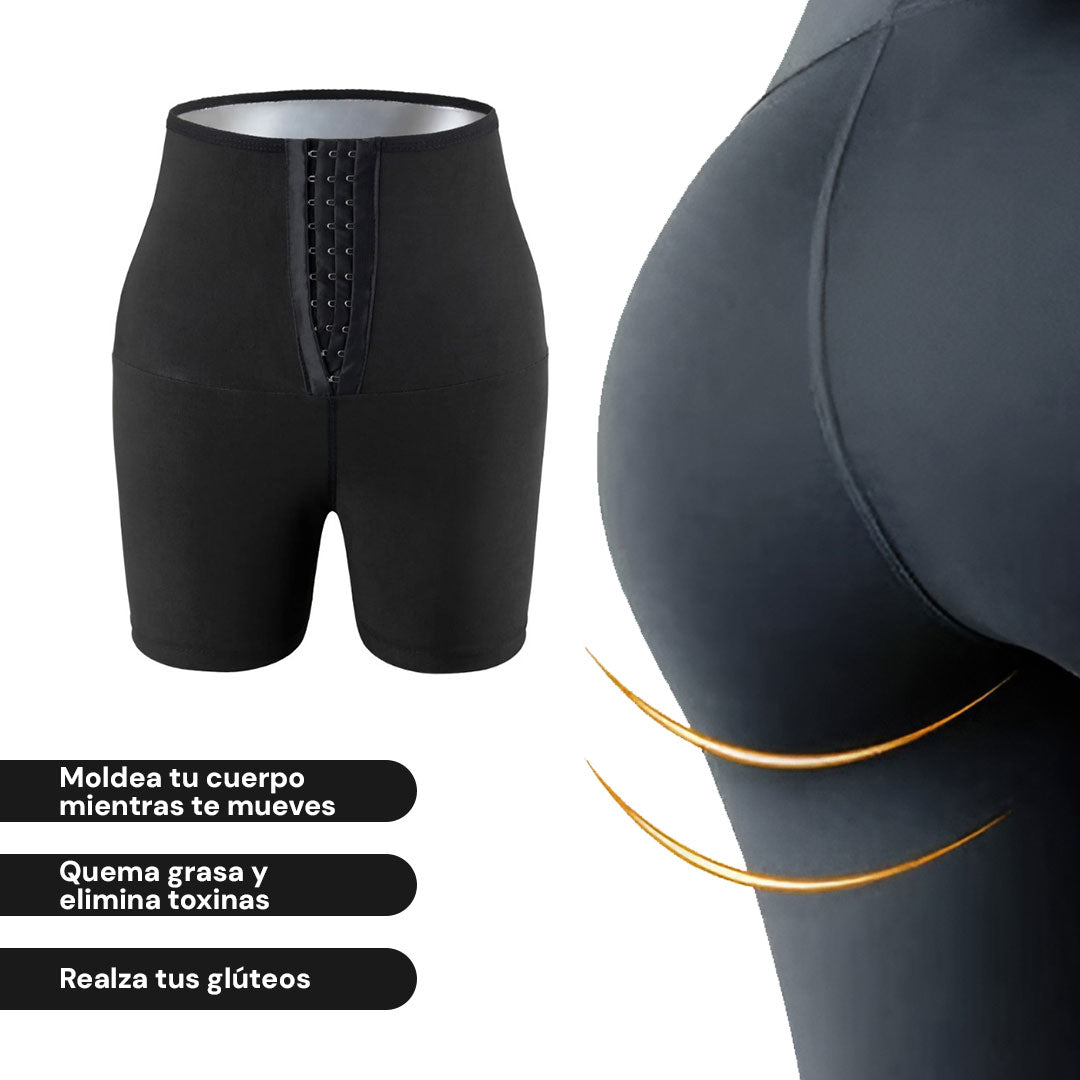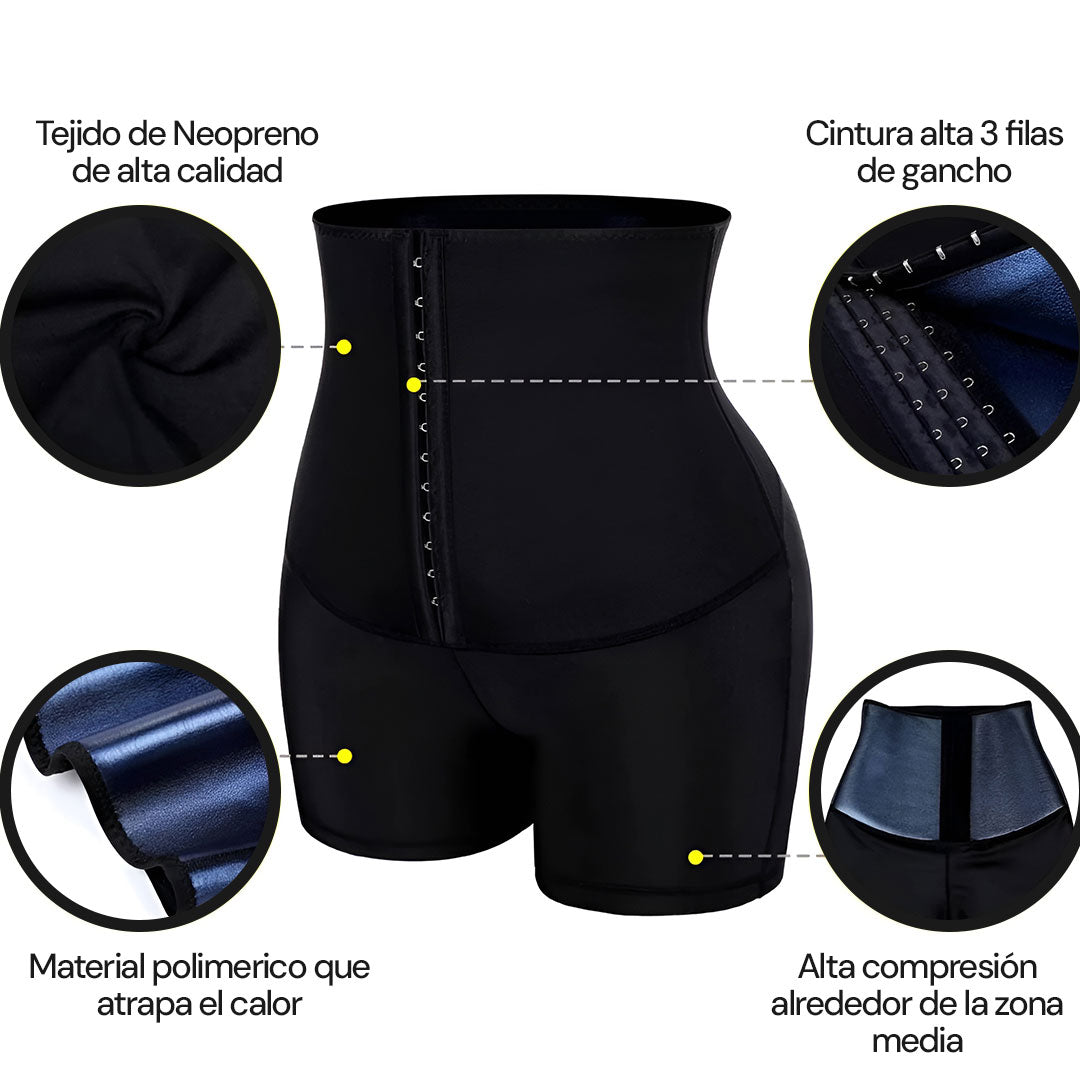 - Beneficios clave: Aumenta la sudoración, moldea el cuerpo, realza glúteos y aplanar el abdomen.