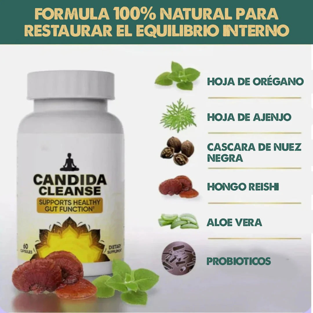 🧼 Candida Cleanse suplemento natural 🌿 diseñado para ayudarte a: