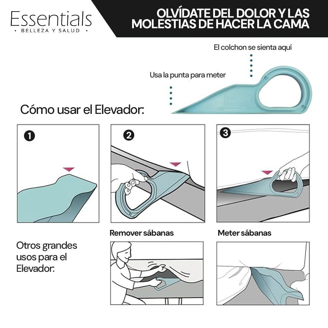 Función principal: Facilita tender la cama sin esfuerzo ni dolor, ideal para personas con problemas de espalda y articulaciones en las manos.