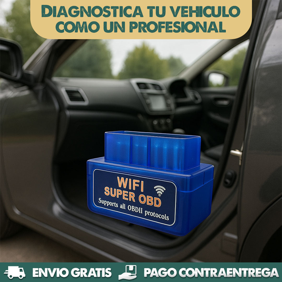 Se conecta por WiFi. Solo debes activar el WiFi de tu dispositivo móvil y vincularlo a través de una app compatible como Torque, Infocar o DashCommand.