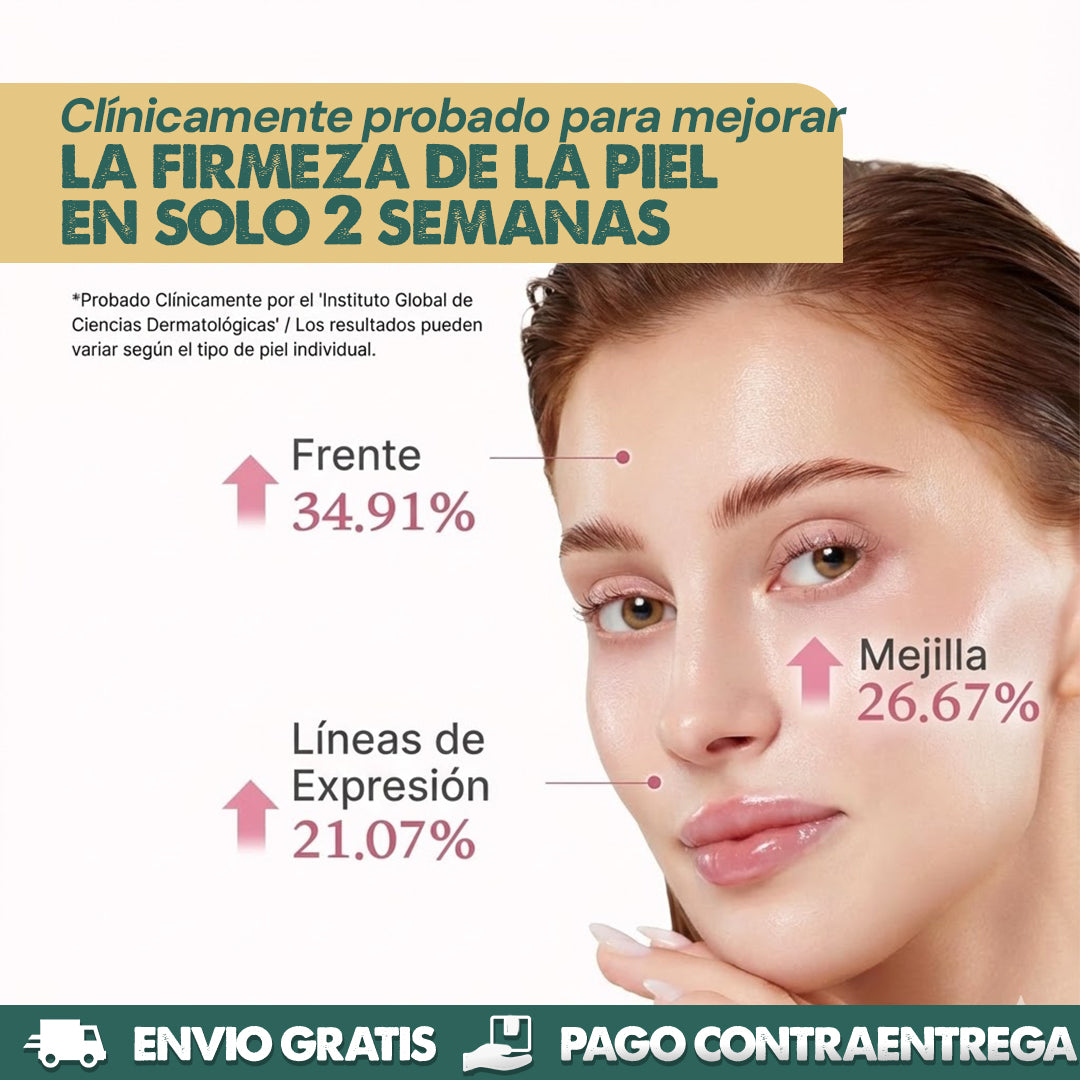 Está diseñado para apoyar firmeza y “rebote”, ayudando a que la piel se vea más tersa y con mejor apariencia de elasticidad