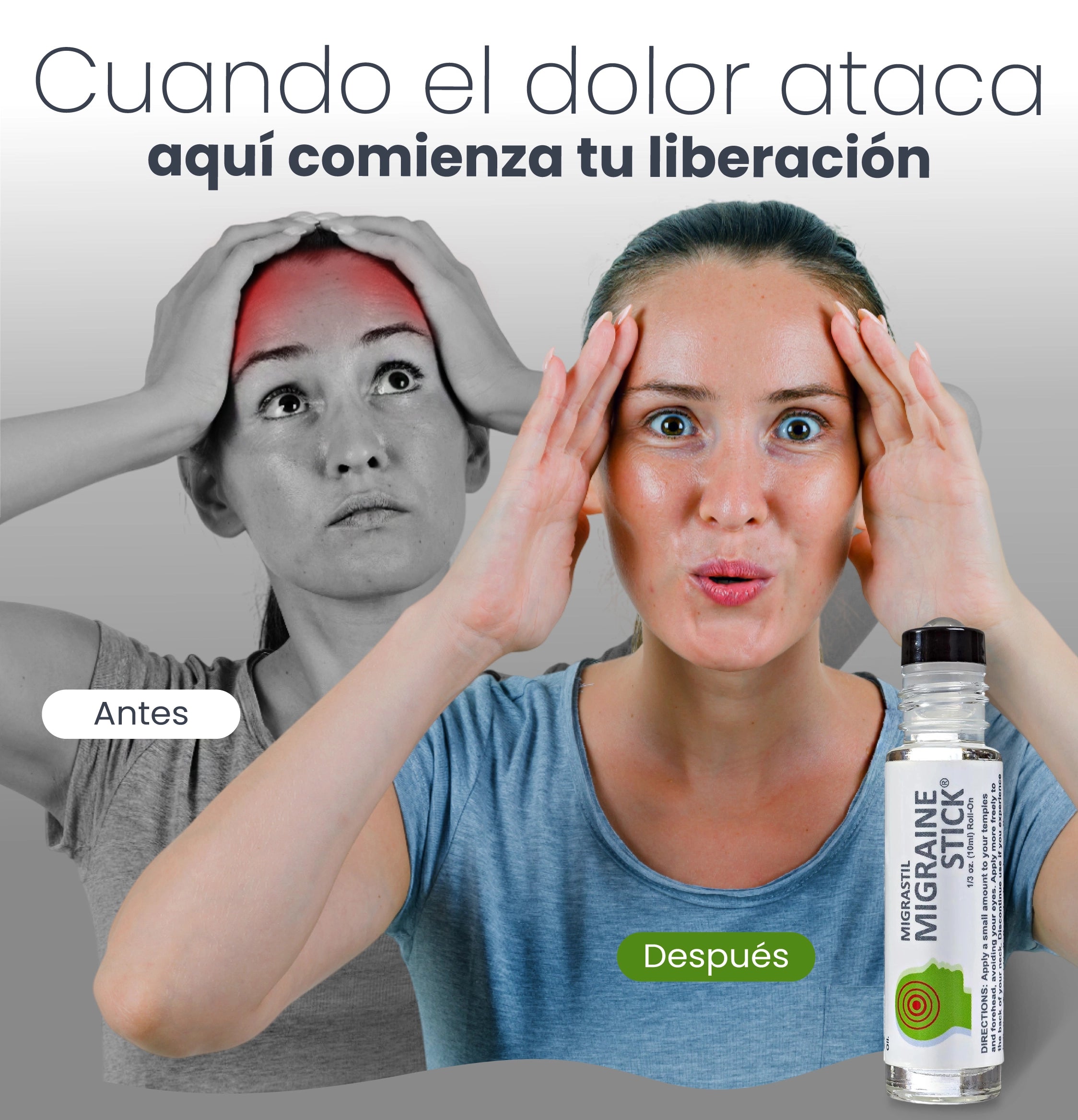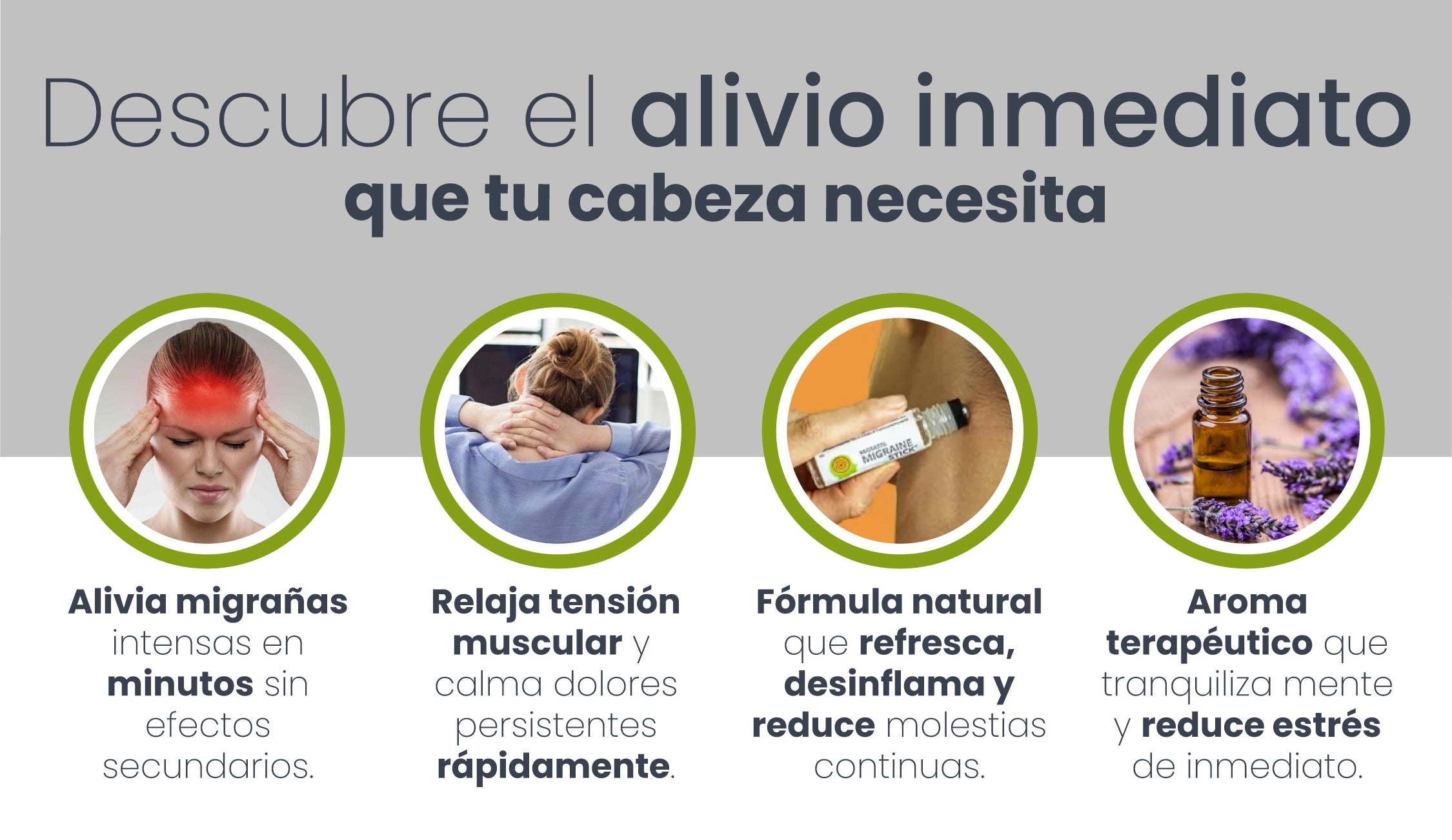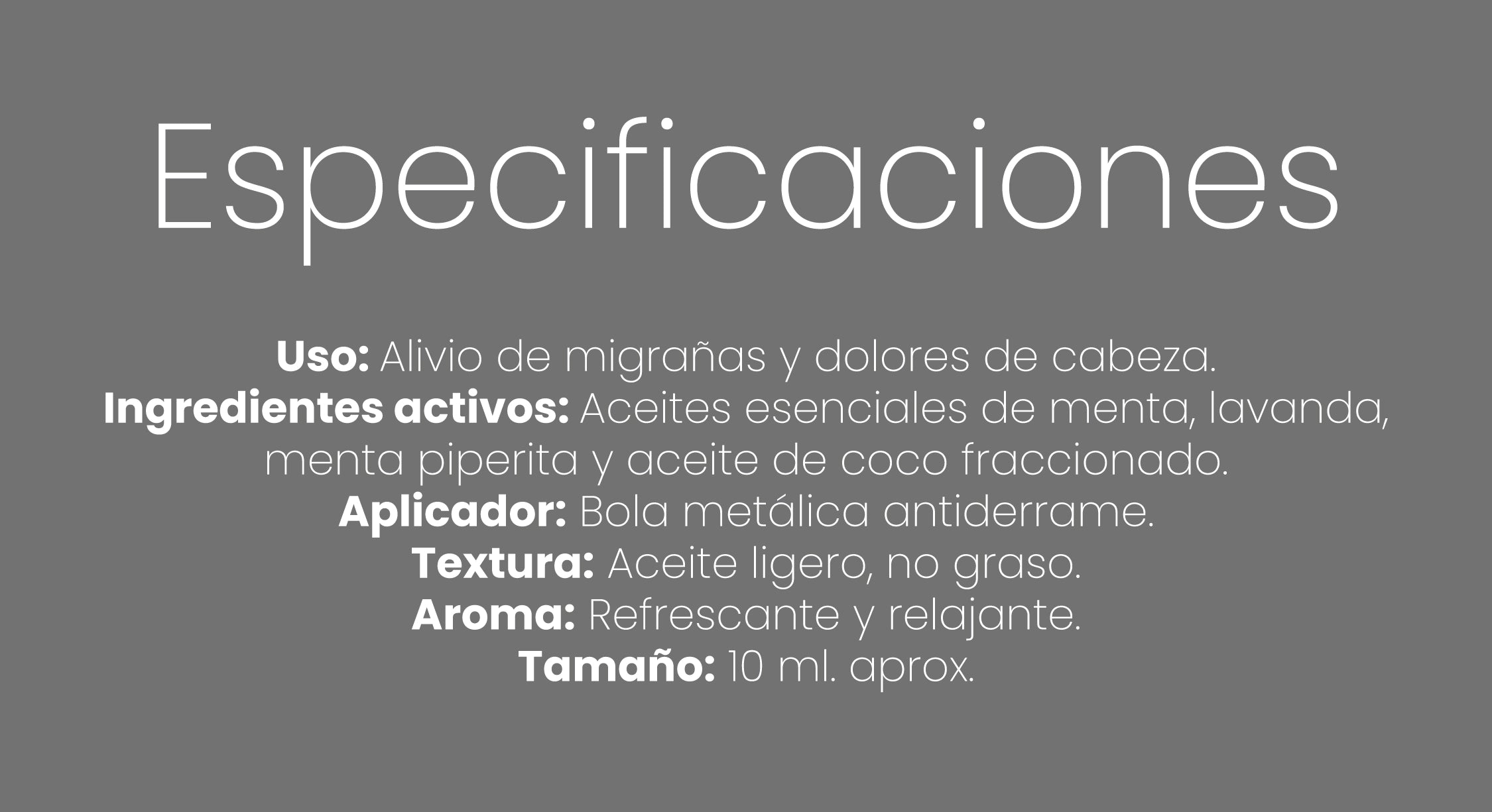 Aplica directamente en las sienes, frente o parte posterior del cuello con movimientos circulares suaves.