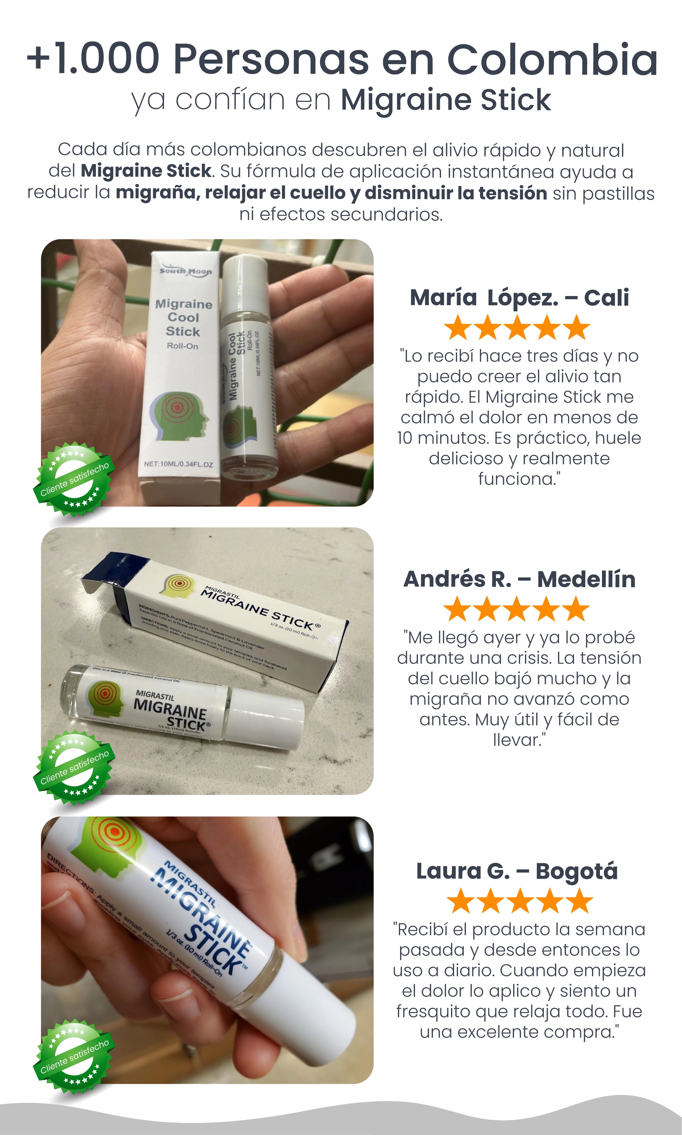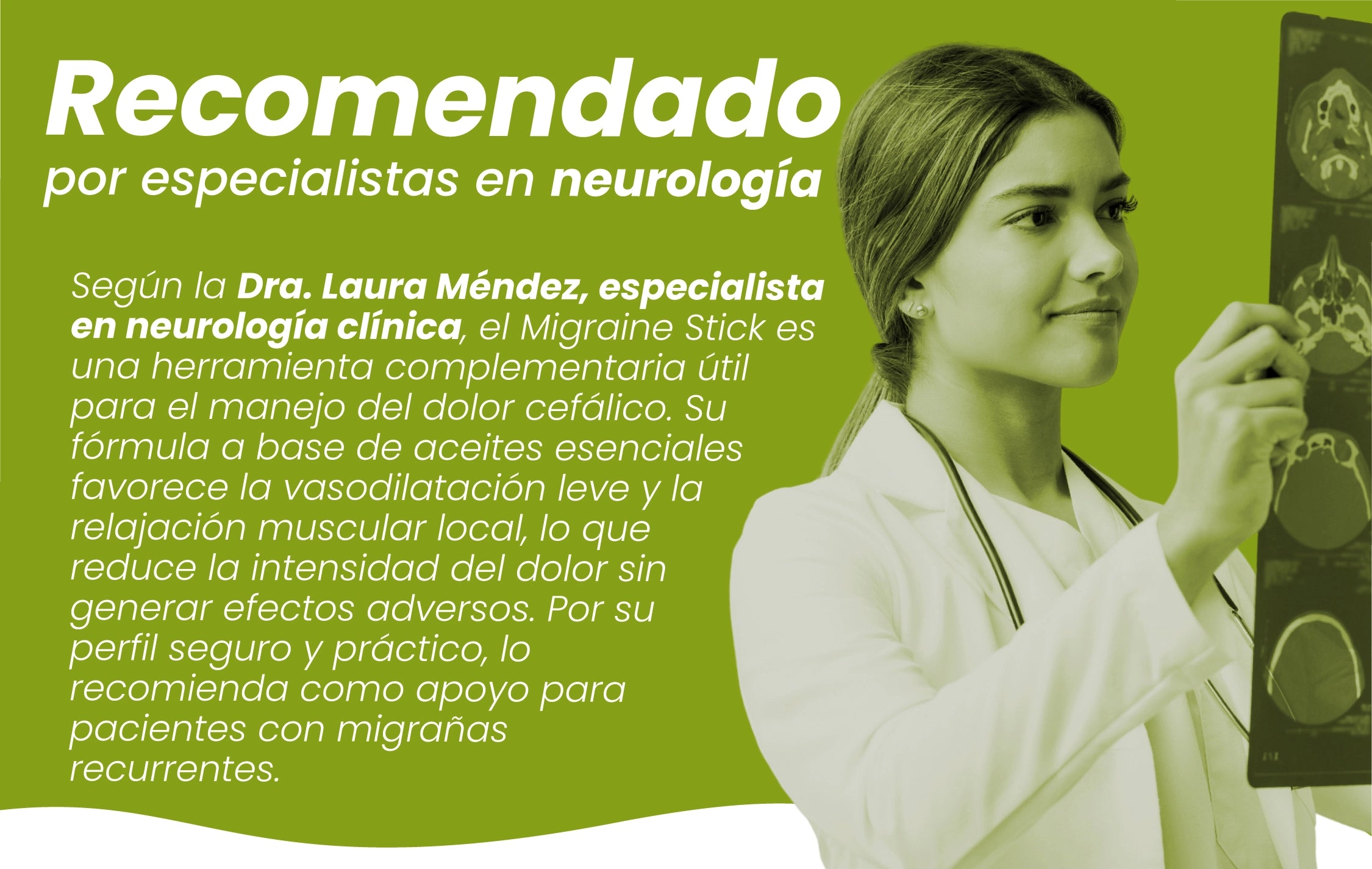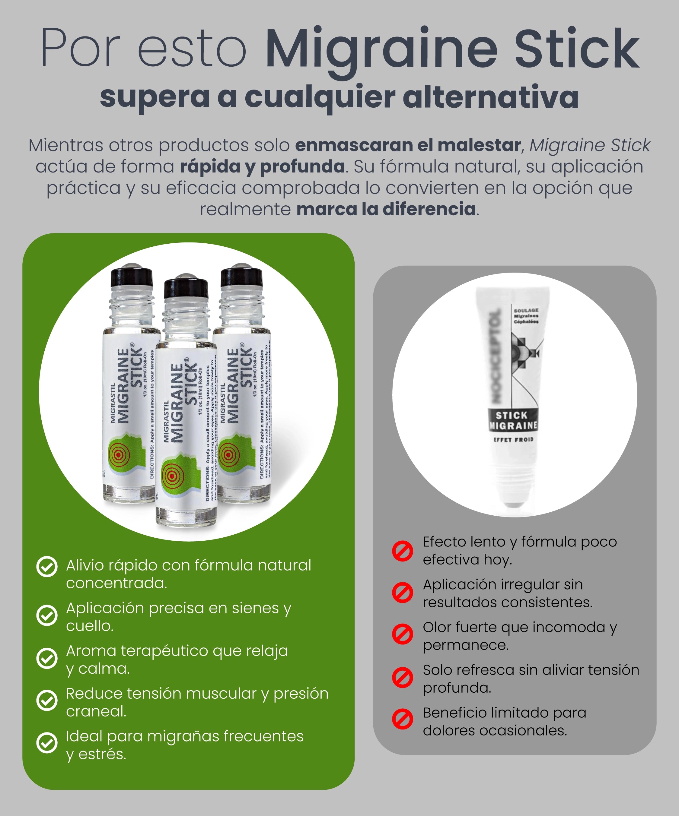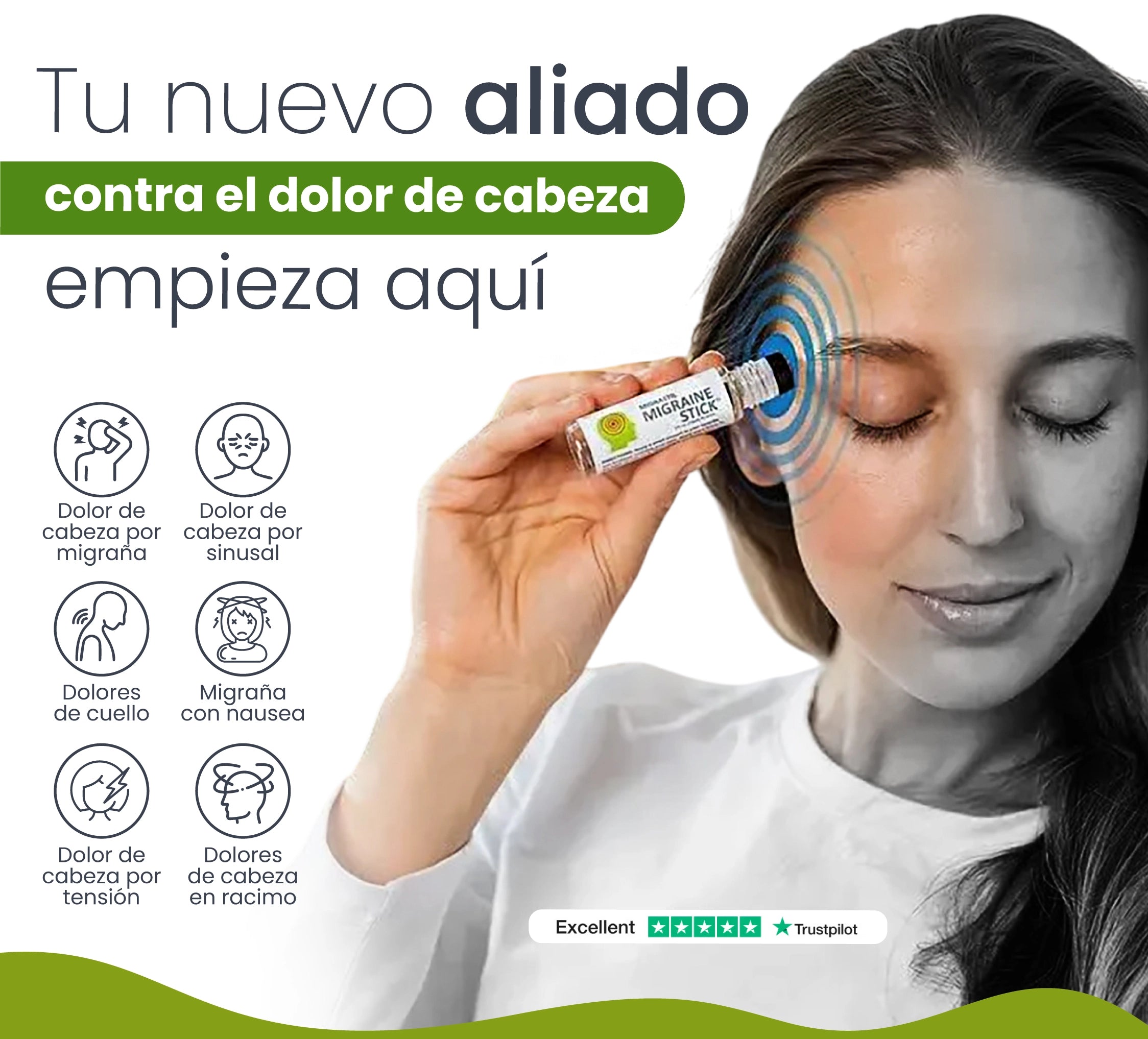 Aplica directamente en las sienes, frente o parte posterior del cuello con movimientos circulares suaves.