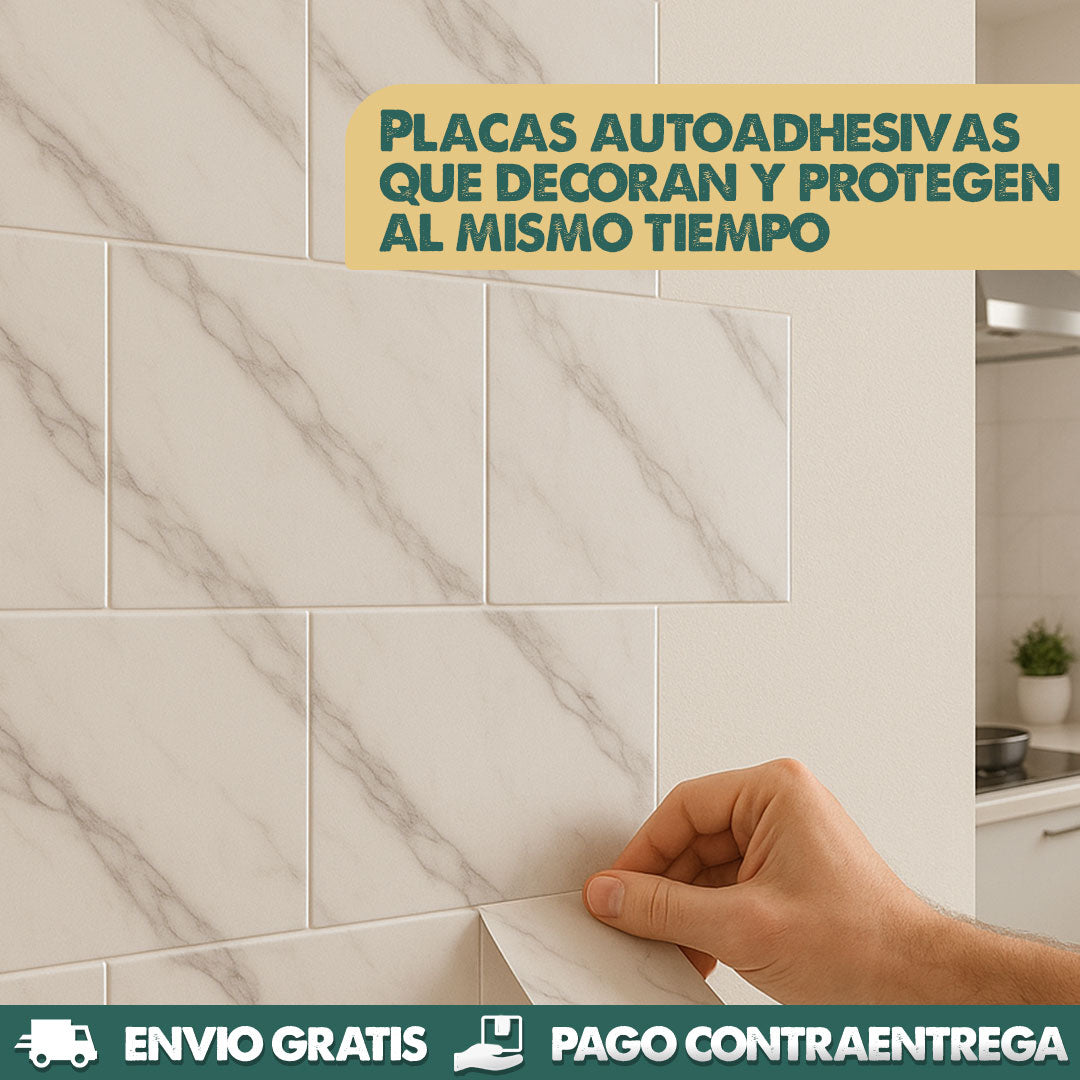 No: las placas tienen adhesivo fuerte y mate, se mantienen fijas incluso en zonas húmedas.