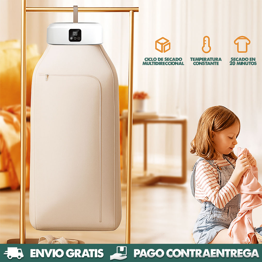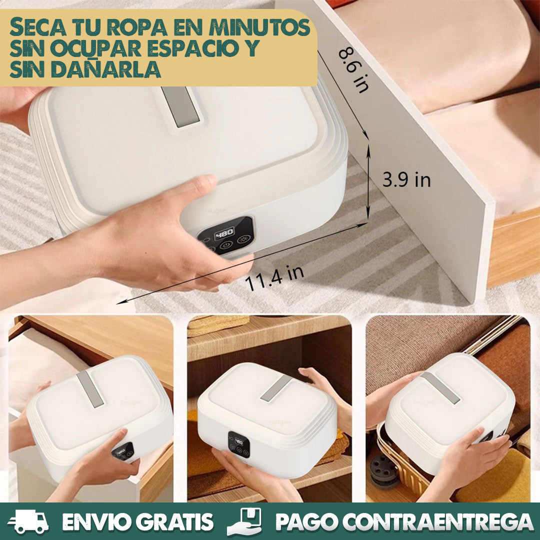 Esta mini secadora cuenta con dos modos de calor y tecnología UV que limpia y seca sin dañar las telas.
