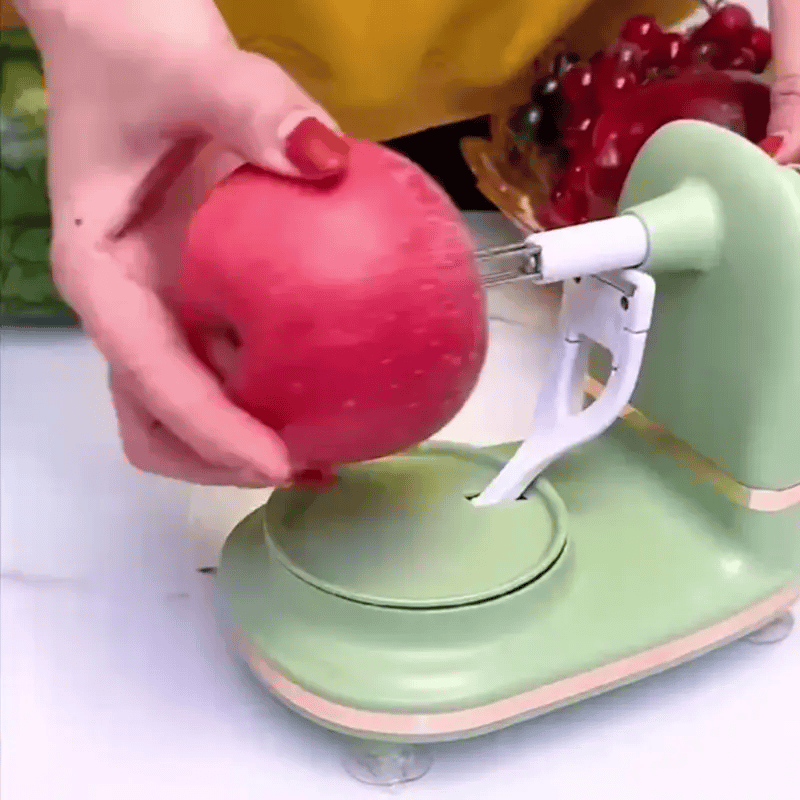 Funciona perfectamente con manzanas, papas, peras y otros vegetales de cáscara fina.