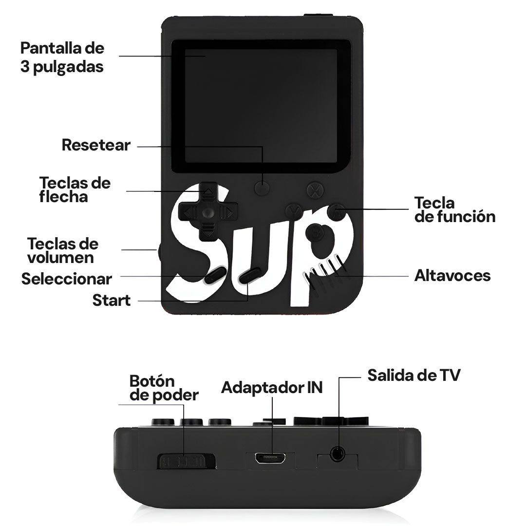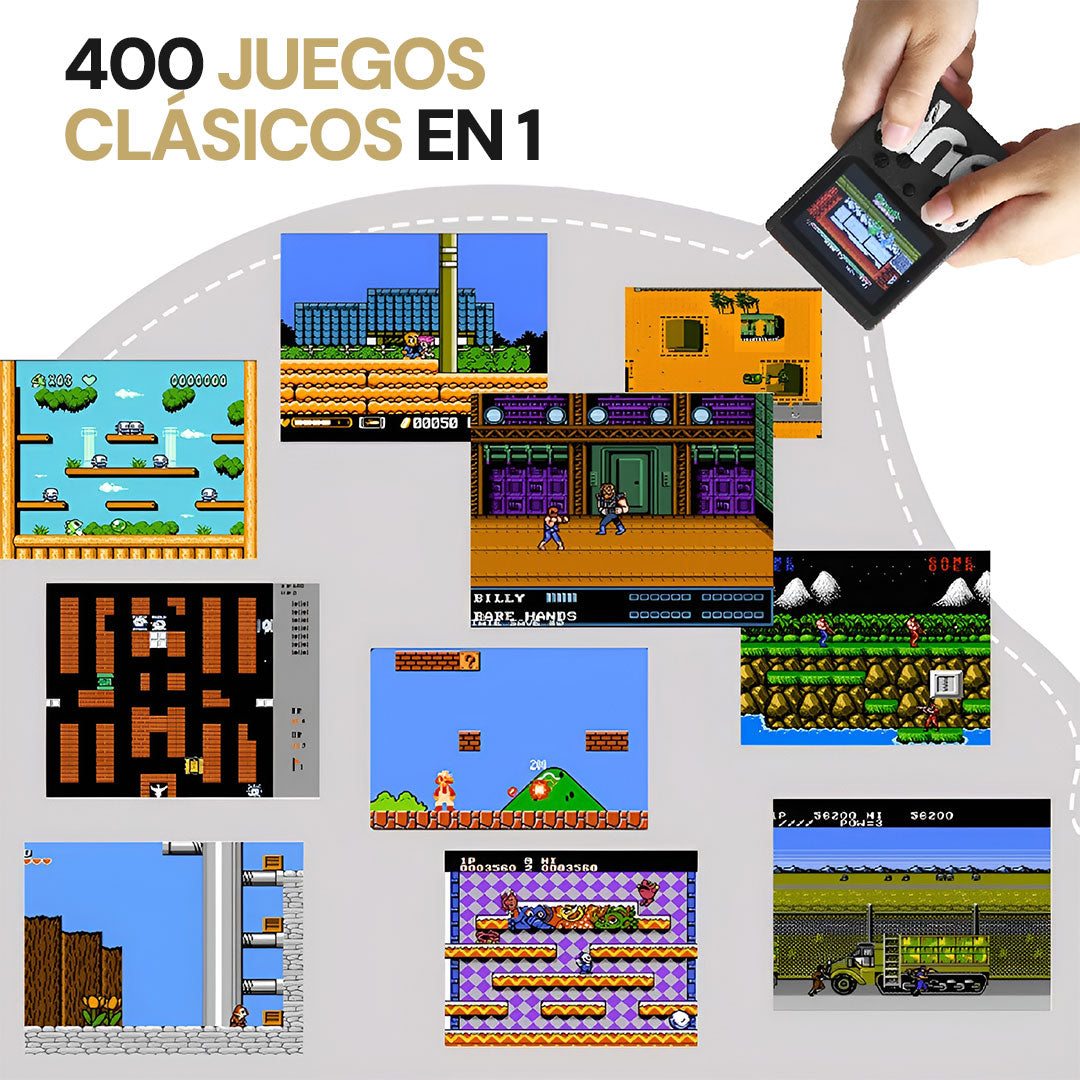 Lleva contigo más de 400 juegos clásicos como Mario y Aladdin. Diseño portátil y práctico, perfecto para jugadores de todas las edades. Conéctala a tu TV para disfrutar a lo grande.