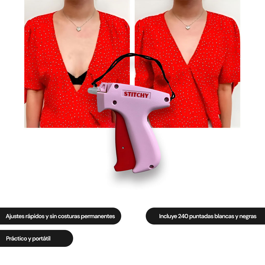 Stitchy está diseñado para modificar tus prendas en segundos. Ajusta puños anchos, eleva escotes o cierra huecos incómodos con facilidad. Envío gratis y pago contraentrega