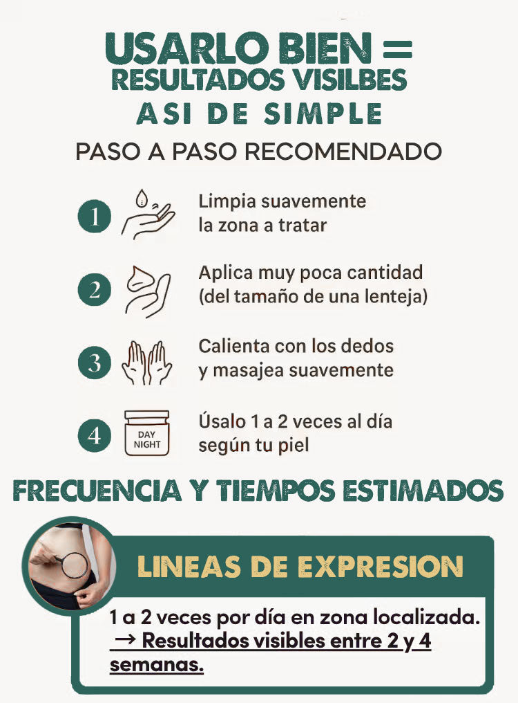 Los resultados iniciales pueden notarse desde la segunda semana de uso diario, mejorando progresivamente con el tiempo